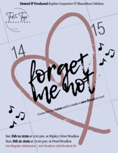 Tom Toce (“Urban Stages,” “Songwriter in the House”) and I contributed our first collaboration (“I Want to Be Liked”) to this new musical revue (“Forget Me Not”). The very talented Andrew Timmins will be performing the song. Two days Saturday  February 14th (YEP Valentines Day) at 5:30 PM at Ripley Grier and Sunday February 15th at Pearl Studios.